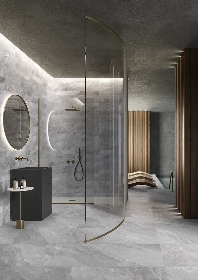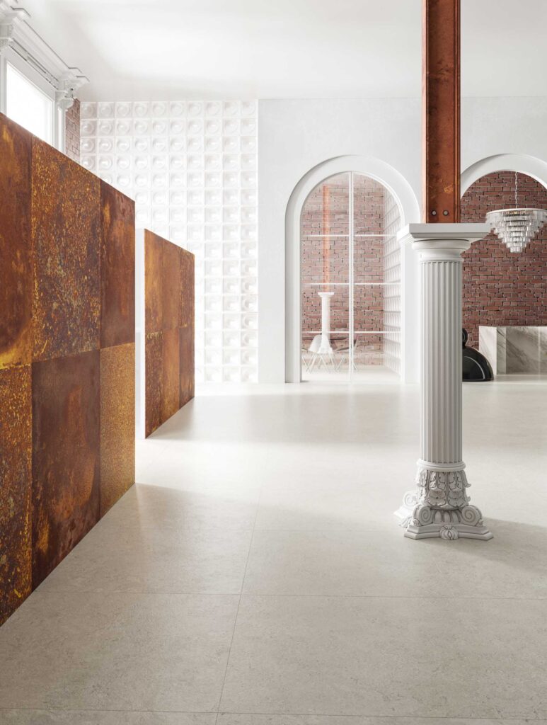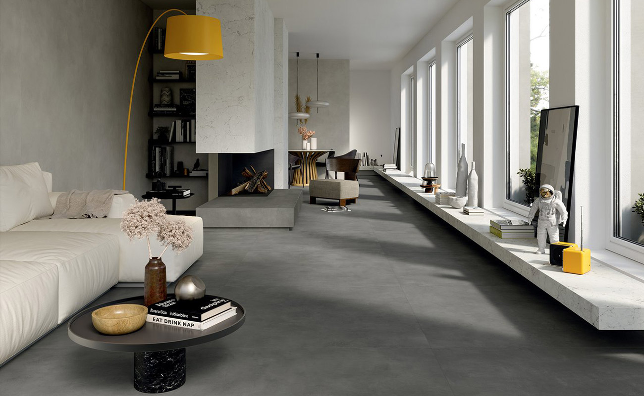 - El uso de baldosas o losas de gran formato (XL tiles / large-format tiles) crea superficies más continuas, con menos juntas; esto da sensación de amplitud y limpieza visual, ideal para espacios abiertos.